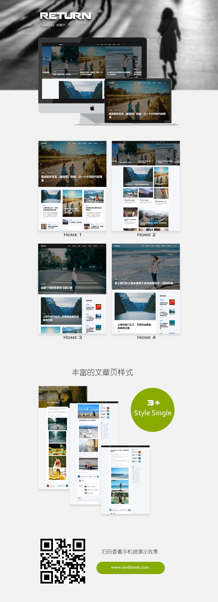 这款WordPress主题有多种布局样式,后台一键切换。(详细效果请查看演示站)